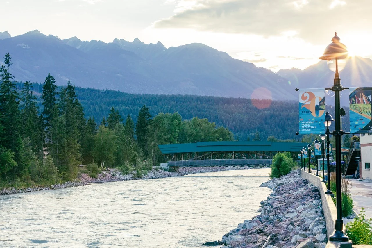 Next, head into town and take an easy stroll across the Golden Pedestrian Bridge, a covered timber bridge spanning the river. Built largely by volunteers in the early 2000s, it’s one of Canada's longest freestanding timber-frame bridges and connects downtown with walking paths and river views.